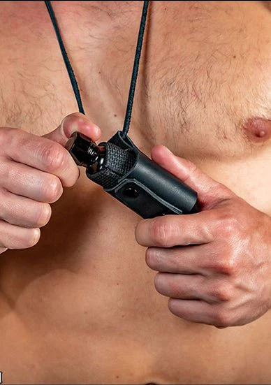 Keep your poppers close to you with the Mr S Leather Popper Holster. Snap this holster to your jockstrap or use lace to tie it around your neck. No more crawling on the floor looking for those poppers! Included is a neoprene cozy to use with smaller bottles such as 10ml to ensure the bottle stays put. Works with 10ml and 25ml bottles.